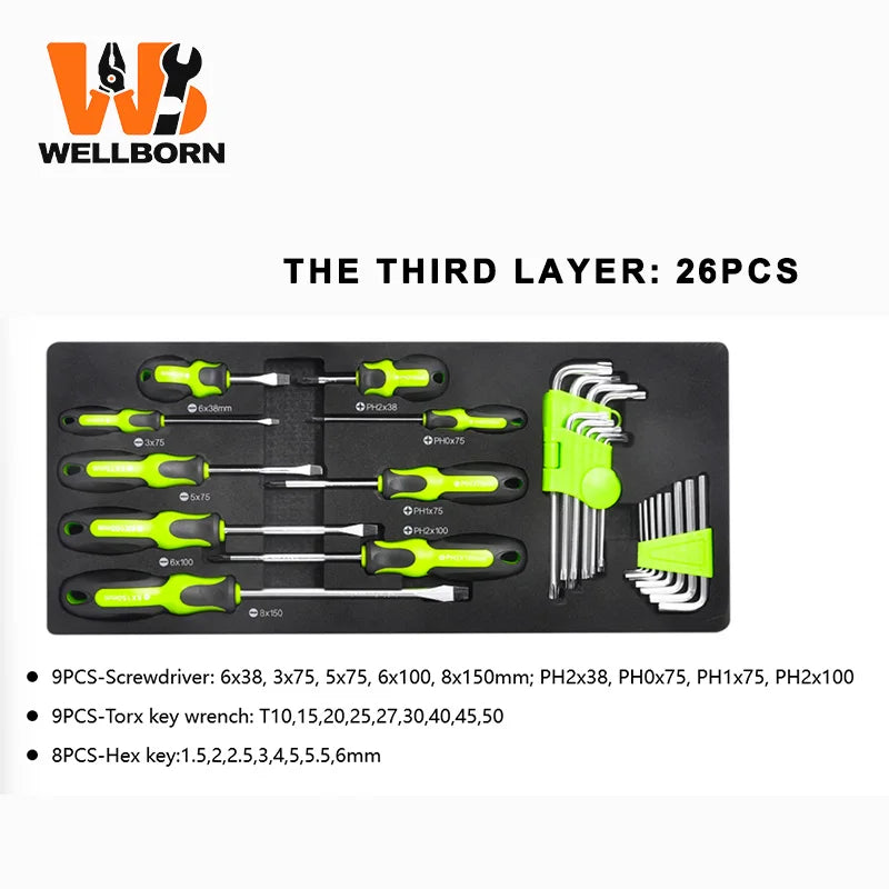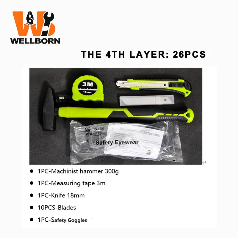 El Set de Herramientas 119PCS con caja de hierro de cuatro niveles es un kit robusto, portátil y multifunción, diseñado para mantenimiento mecánico, automoción y reparaciones profesionales. Incluye herramientas esenciales organizadas en una caja metálica con cajones, resistente al agua y pensada para un uso intensivo. Ideal tanto para talleres como para profesionales y usuarios exigentes. 🔩✨