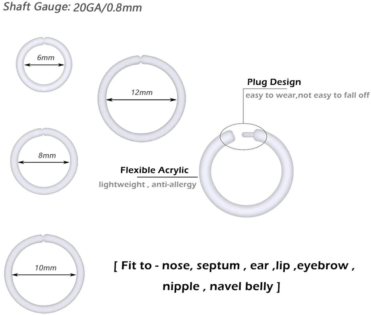 New 12PCS 20G Clear Segment Rings Retainer Clear Plastic Tragus Clicker Helix Cartilage Earrings Hoop Daith Piercing Jewelry