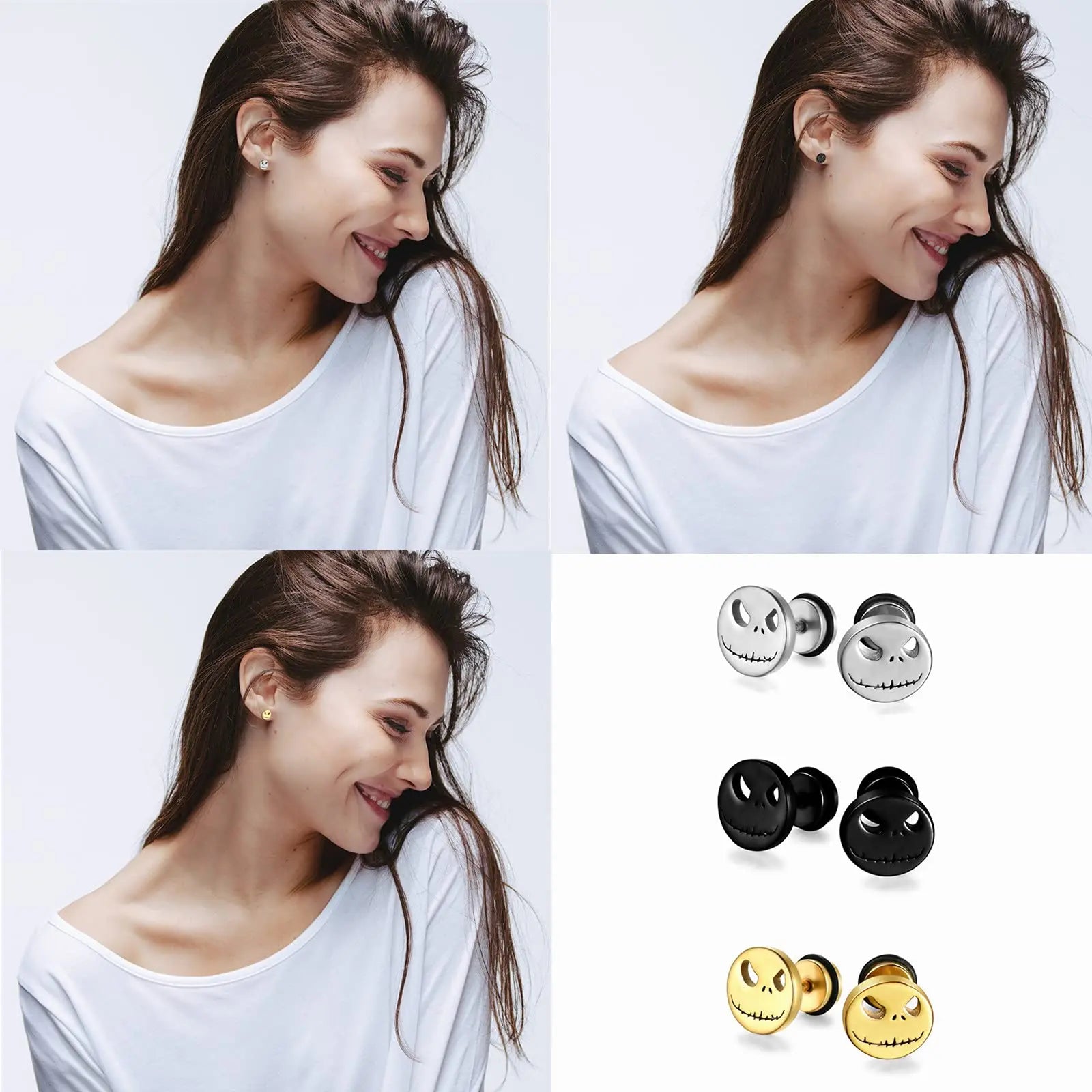 1 Pair Fashion Titanium Round Cake Stud Earrings For Men Women Halloween Pumpkin Head Earrings Stainless Steel Jewelry Evil Eye