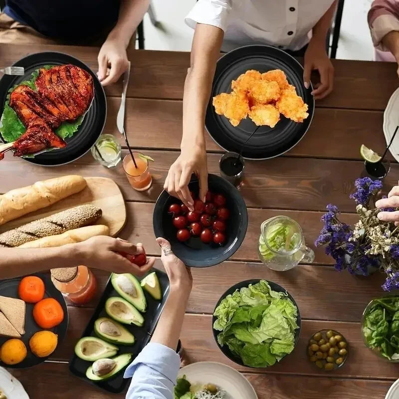 16 PCS| Plates and Bowls Sets for 4, Unbreakable Dinner Plate, Dessert Plates, Cereal Bowl, Drinking Cups, Microwave Safe Dishes